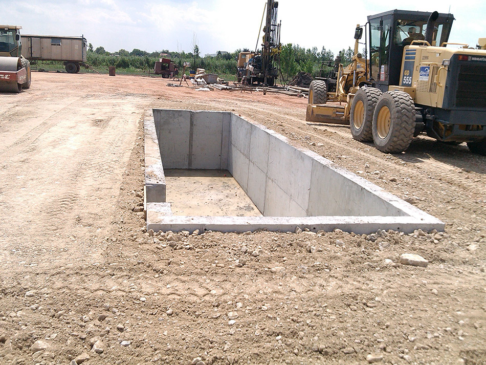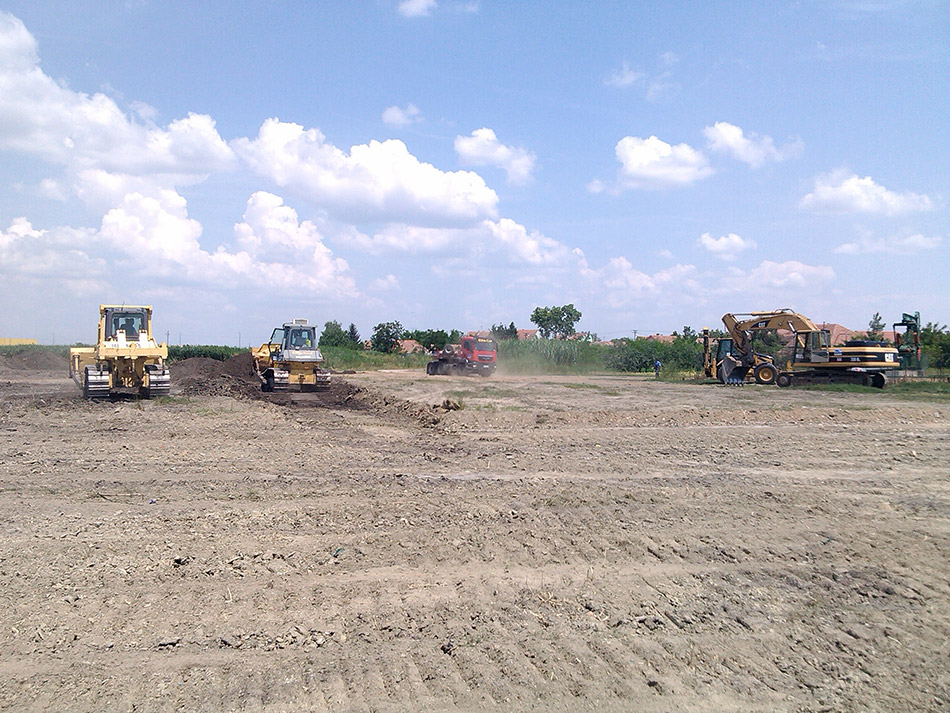 The terrain was cleared, groundwater was pumped, humus was excavated, crushed stone was poured on the entire plateau, and AB foundations and working pits were drilled for 3 wells on site.